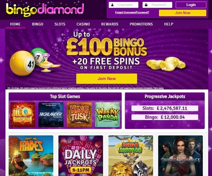 Welcome to Bingo Diamond Casino, a no.1 online bingo and casino in the UK! Play now and grab 50 free spins on top of the welcome bonus!