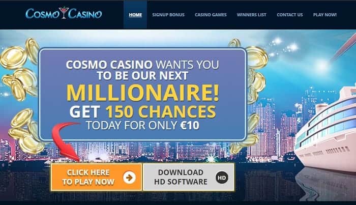First time passengers at Cosmo Casino are warmly welcomed with an exceptionally generous welcome offer of 100% up to €500. On top of the bonus money, new players receive 150 free spins on Mega Moolah jackpot when they deposit €10 or more for the first time.