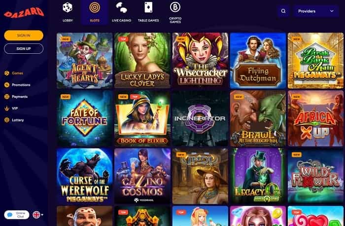 Each online casino strives to diversify its game repertoire. However, it's essential to understand that the quality of the games depends on the software providers the casino site works with. Dazard created a comprehensive lobby by incorporating the best names in the industry, such as NetEnt, Betsoft, and Pragmatic Play. The platform also features smaller studios for fresh and exciting attractions. You will also see providers like Arcadem, Spribe, and Baddingo.