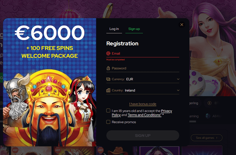 As soon as you open your account, you can claim our exclusive welcome bonus. Enjoy 50 no-deposit free spins + €/$6,000 (or 5 BTC) + 200 free spins on the first deposit!