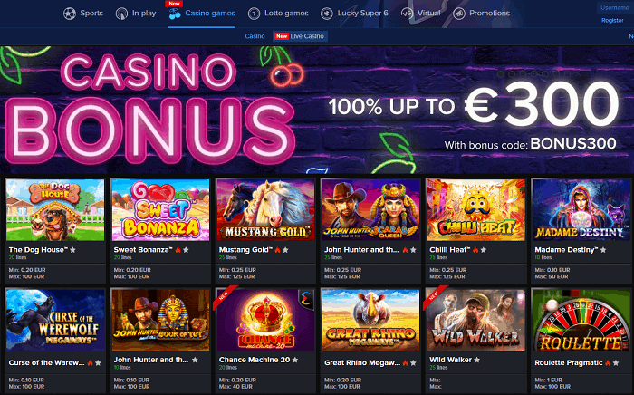 There are 2 deposits for new players: 100% up to €300 (casino) and 100% up to €100 (sportsbook). Plus, there's a €20 free bet on your first deposit.
