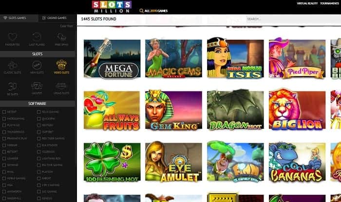 SlotsMillion.com has around 3000 games in its inventory. This is way more than what most competent casinos have to offer. The developers at Slots Million have just gone and broken a record. This is the first ever casino to provide a virtual reality casino. The list of developers at Slots Million is currently at 78 and still growing. Some of the names include: