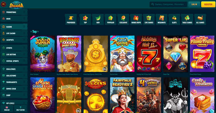 Thanks to these carefully curated categories, finding your favorite games and exploring Spinanga's diverse selection is a breeze.