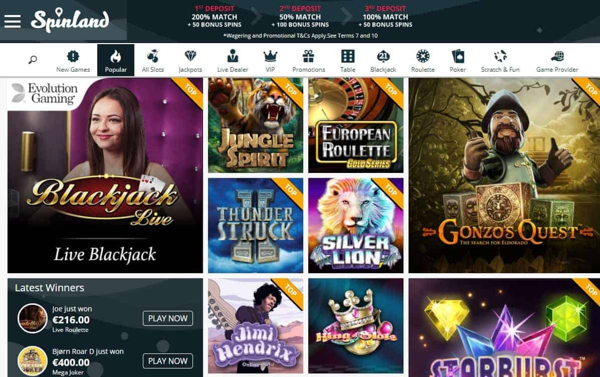 If you like the sound of the spinning action on offer in Spinland, you should definitely check out top slots including Gonzo’s Quest, Jungle Spirit, Guns ‘N’ Roses, Warlords: Crystals of Power and more! At this casino, you’ll get to enjoy all of the latest high-quality video slot releases all under one virtual roof.