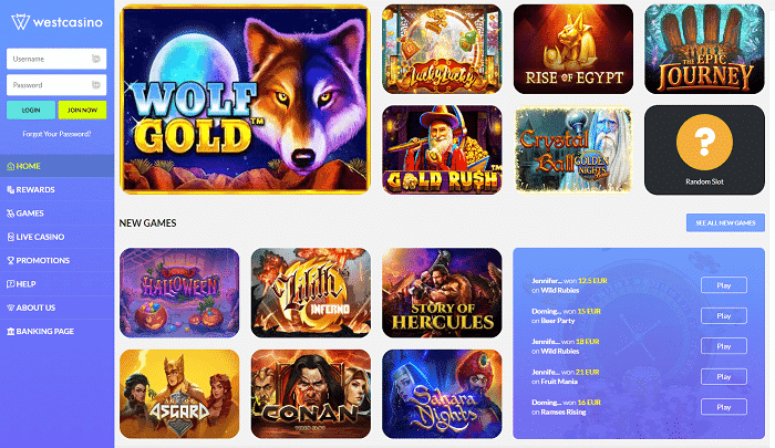 If we were to design a gaming lobby from scratch with a focus on clarity and fast navigation, the result would probably be something like what West Casino has to offer. The gaming lobby is as stylish and fast as it can be!