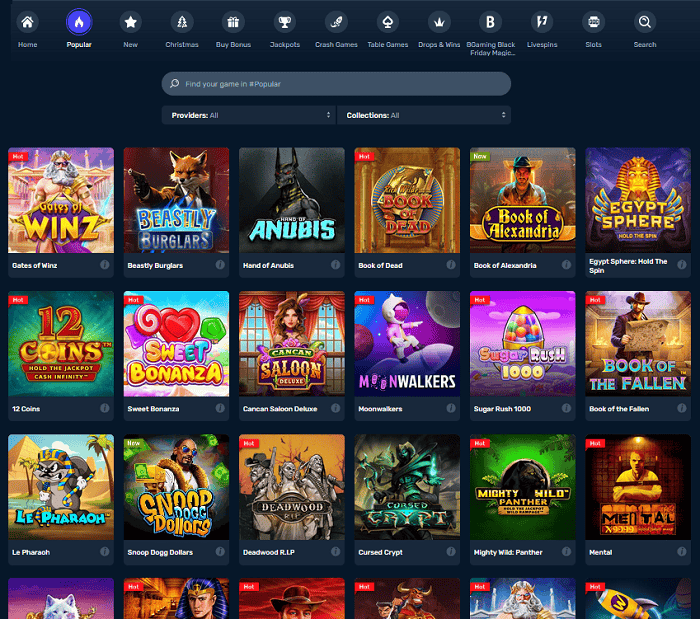 Winz.io Casino boasts an impressive library of over 7,500 games, an enormous collection for enthusiasts. You can explore a variety of options, from engaging video slots to live dealer and table games. The casino collaborates with numerous esteemed developers, featuring Evolution Gaming for live casino experiences and Netent, Pragmatic Play, Play n'GO, and Quickspin for slot enthusiasts.